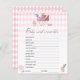 「甘いものが醸造されている」。水彩茶パーティーテーマベビーシャワー。お茶、マカロン、カップケーキ、花の水色カップ。ピンクの菱形。答え:クレービング、泣き叫び、おしゃぶり、ボトル、ナイトライト、子守唄、ベビーカー、硬膜外、バップ、ハイチェア、おむつバッグ、スワドル