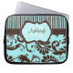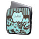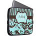 ダマスク織のラップトップスリーブが付いているこの名前入りな水の青く、チョコレート色の、および白のストライブ柄にあなた自身の名前、モノグラム、商号、または他の文字とカスタマイズべきあなたのためのテキスト・ボックスがあります。 カスタマイズ助けを必要としたらniteowlstudio@gmail.comに電子メールを送って下さい。