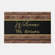 素朴なフェイク木の繰り返しパタパーソナライズされたーン歓迎ファミリー名ドアマット。