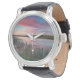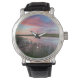草原の池が日の出の鮮やかな雲を反射 腕時計