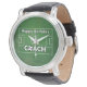 この素晴らしい贈り物、お土産と緑、白、黒の色で贈り物であなたのサッカーコーチに非常にハッピーバースデーを望む。あなたのメッセージと言葉のコーチに含まれるボールは、すべて緑の草でいっぱいのフィールド上。