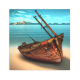 荒れ果てたボートを捨てられたサンディビーチ メタルプリント