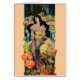 菊の間に黒髪の婦人が坐る。ヴィンテージアールヌーボープリント