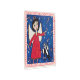 紺色の夜空に浮かぶ赤いドレスの天使が黒と白の天使の猫を引っ掛け、白い背景に赤のキャンディカンを落としファンシーて縁ど、赤いキャンディカンを捕らえるプリントです。
