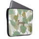 スタイリッシュパーソナライズされたラップトップスリーブ、緑、茶色、白のパターンのグラフ葉ィックス。自分のためにカスタムまたは素敵な贈り物アイディアとして文字をパーソナライズ。