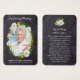 シンプルデイジーフローラ悔やみや弔慰葬儀祈りの言葉カード。このモダン記念エレガント祈りの言葉カードは素朴な黒板石板デザインにデイジーの花を特徴とする。フロント「愛の記憶」愛する人の写真、名前と日付、気持ちと共にこの追悼式祈りの言葉カードをパーソナライズする。先頭へ戻る~日差しの中を歩いてパーソナライズされたみたまえもしよ」の詩は、他の特定の詩とデザインを望む。この記念祈りの言葉カードは大切な記念碑であり、葬儀や生活のお祝いに使われる。COPYRIGHT © 2020 Judy Burrows, Black Dog Art - All Rights Reserved.デイジー素朴花写真記念祈りの言葉カード