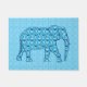 アラベスクなタイルの背景に象の混合メディアのデジタルグラフィックでDoormat -ターコイズ、ダークインディゴブルーとアクアの背景に白い蓮の花のパターン
