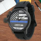 薄いパーソナライズされたブルーラインアメリカ国旗の警察 腕時計