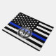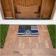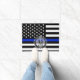 薄いブルーラインスタイルの米国旗。 法律施行の象徴的な白黒およびコバルトブルーの米国旗。 これはカスタムなドア・マットで特色になります。