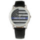 薄い青い線 – アメリカ国旗パーソナライズされた 腕時計