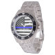 薄いパーソナライズされた青い線の腕時計。収集、記念碑、思い出し、特別な機会のための完璧な贈り物。