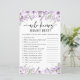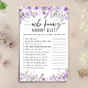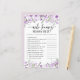この誰エレガントがラベンダープレス花模様コレクションからモーミーの赤ちゃんシャワーのゲームを知っている鮮やかは、スクリプトのフォントと組み合わせ繊細な緑のつる植物と紫の水色の花模様をモダン備えている。どんな季節にも最適。事前に変更するには、「パーソナライズ」>「デザイン・ツールを使用した編集」を選択する。