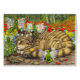 アクリルインク- mischeivious妖精の国が花で彼を飾る間ケシ分野で居眠りしている虎猫のトムがっしりした猫。 猫のbuckaroo。