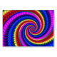 ファンキーで腰回りが大きなスタイルの虹の渦巻パターンを特色にする挨拶状。 赤く、オレンジ、黄色、緑、青のこのフラクタルの芸術の螺線形か渦巻はそれの顔がパターンおよび明るい色に催眠術をかけているeveryonesに、紫色およびピンクスマイルを持って来ます。