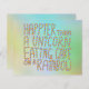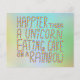 色の背景に書あるカラフルのスローガン違うは、「虹の上のユニコーンのケーキよ食べり幸せ」と言う。