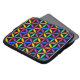 抽象芸術の幾何学的な円のデザイン、黒い背景の明るい虹色