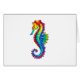 白い背描景の上に、芸術的に、明るく、虹の、多角形のシーホース。明るいタトゥー。