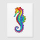 白い背描景の上に、芸術的に、明るく、虹の、多角形のシーホース。明るいタトゥー。
