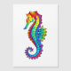 白い背描景の上に、芸術的に、明るく、虹の、多角形のシーホース。明るいタトゥー。
