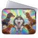 虹の背景を持つ犬の子犬 ラップトップスリーブ