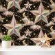 虹色の星と金ゴールドムーンオンブラック 壁紙