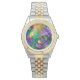 虹色のmardi gras背景とビーズ 腕時計