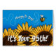 "幸せなB日-ですあなたの第95は!" ヒマワリの列に飛んでいる蜂を特色にするかわいい年齢の特定のバースデー・カード。