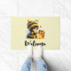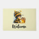 可愛いイメージのウェルカムドormat。ミツバチの衣装を着た女の子がビーを並べて来た。ハチミツの瓶を見張って