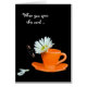 蝶独身のの付いたオレンジ色のティーカップのデイジー