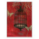ノーマン淡い色の・ワイアのまわりにットによるこ絵画の鳥の上に2羽の蝶が浮かぶ。葉つる鳥の上に乗って、すべて深紅の背景にある。今日このプリントを注文!