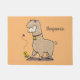 蝶の漫画と可愛い幸せなアルパカ ドアマット