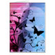 青く、ピンクの抽象的な背景の蝶そして花のこの設計特微のシルエット。