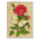 それでとまられてかわいらしい浅い黄色の蝶が赤いバラのスプレーのこの設計特微の美しいヴィンテージのアートワーク。 背景は美しい原稿との黄褐色の色です。