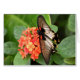 オレンジ花の黒く、白くおよび黄色の美しい蝶。