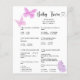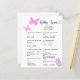 紫の薄紫とピンクの蝶のキスとベビーは赤ちゃんのシャワーパーティーを願う。女の子のための蝶の赤ちゃんシャワーカード。一致する項目が使用可能。回答鍵: 1.d 2.d.午前4時。5.c.6.a7.b.8.c.