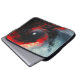 このラップトップスリーブには赤と黒の旋回アートデザインが付いている。