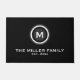 doormatモダンはシンプルタイポグラフィと白黒のエレガント様式化されたモノグラムのメダリオンとデザインを備えたモダン。モノグラムカスタムイニシャル、ファミリー名および確立日でパーソナライズするか、または連絡の「このデザイザ」ボタンを使救済用。カップル結婚のための完璧な贈り物や引っ越し祝いパーティースタイリッシュ贈り物。