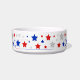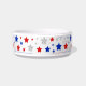 赤、白、青の星で飾られたペットボウル。