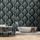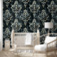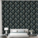 ヴィンテージインスパイアブラックのダマモダンスクグランジ壁紙インテリアのソリューション。
