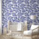装飾用華美ギリシャ青フローラ線パターン 壁紙