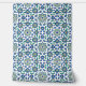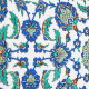 青、緑、赤のモチーフが調和したオットマン風の複雑な花のパターンが宇宙を満たし、調和のとれた鮮やかデザインを作り出す。トルコの陶器や伝統的タイルの作品を連想させる装飾的な要素を示す配置。