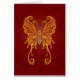 種族の蝶カード設計は複雑な渦巻およびドット・パターンと飾りました。 複合体のラインおよび円は表面の軽い輝やきを作成するために強調される金赤と着色されます。 翼のインテリアおよび体は背景で繰り返される深紅と終わりま、美しく、微妙なコントラストを作成します。 影はそれを作っている敏感な蝶の下でちょうどカードの表面の上でちょうど浮かぶようです落ちます。 この様式化されたデザインはこのすばらしく小さく飛んでいるな創造物の顕著な表示です。