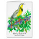 西メドウラークがオレゴンのブドウの茂みに立ち寄る際に歌うグリーティングカードは、黒いペンとインクと水色の付いたオレゴンの州の鳥と州の花とオレゴンの花で歌わ絵を描せる。