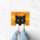 覗き見る黒猫オレンジトリック・オアトリート ドアマット