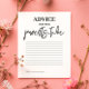 両親が赤ちゃんシャワーゲームになるためのアドバイス保護者がカードになる書ためのアドバイスに関する数語のリクエストを追加し、おもしろいが、あなたのゲストを喜ばせる魅力的な活動!この活気あるゲーム/アクティビティで書は、お客さまは母性に関する何かか、クラシックミニマルなテーマで彼らの経験から何かを行う。Parents-to-be Baby Shower Cardのアドバイスを使えば、お祝いに話しおもしろいや、興奮のtouchを追加でき、新しい親と全てのゲストにとって思い出に残るイベントとなる。スクランブル解除を開始する!