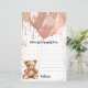 赤ちゃんシャワー。白いスタイリッシュ背景。バラ飾金ゴールド、ドリップ、絵を描滴りの外観、パーティーストリーマー、バルーンと可愛いテディベア。