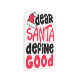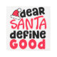 これはおもしろいとおもしろい小さな赤と黒のデザインとよくはしゃぐトレンディーフォントちょうど休日に間に合う。Santa Define Good親愛は、休日ファッションとホームデコールアイテムの両方に最適。