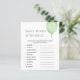私たちの"言葉のスクランブルであなたの赤ちゃんシャワーに笑いと遊び心を追加 | 緑バルーンベビーシャワーゲーム»このカード上の単語のリストを完了する多くのおもしろいを持っている、すべてのベビーに関連し、誰が最初に彼らを奪うことができるだろう!今すぐ手に入れ、忘れられない思い出を作れ!解決策: 1.式2.パシファー3.ベビーモニター4.ロッキングチェア5.スワドル6.おむつラッフル7.ゴムダッキー(アヒルちゃん)8.ベビーカー9.プレイペン10.eosines