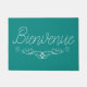 美しくトレンディーフランスの的なホーム歓迎マットは、フローラをモチーフにしたアクセントグラフィックとティール(緑がかった色)色の背景色を変更するレタリングで歓迎の言葉と歓迎マットを含むもし。お客様や来場者を自宅やビジネスに迎えるように設計。