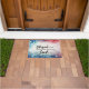 引用文聖なる書物、 経典感動的を使用したDoormatは、アメリカ国旗の抽象芸術赤、白、青のデザインを示す。聖書の詩篇33章12節に書かれている「神が主である国は賛美」と書かれている。